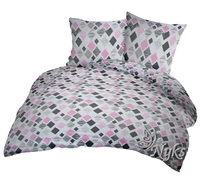 Pościel bawełniana 160x200 + poszewka na poduszkę 70x80 | 335róż | różowa | wzór geometryczny