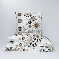 Pościel bawełniana 200x220 + poszewki na poduszkę 2*70x80 | 068brąz | biało brązowa | kwiaty