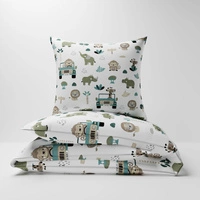 Pościel bawełniana 160x200 + poszewka na poduszkę 50x60 | 138zie | zielona | safari autka