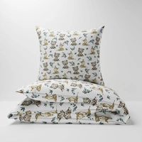 Pościel dla dziecka bawełniana 140x160 + poszewka na poduszkę 50x60 | 050bra | biała | sarenki i misie