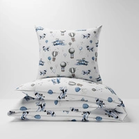 Pościel dla dziecka bawełniana 90x120 + poszewka na poduszkę 40x60 | 081b-n | biało niebieska | samoloty balony