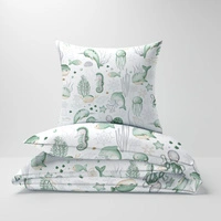 Pościel dla dziecka bawełniana 100x140 + poszewka na poduszkę 50x60 | 235zie | biało zielona | morski