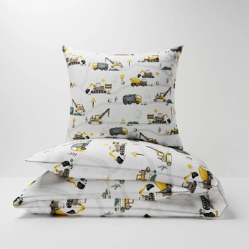 Pościel dla dziecka bawełniana 120x180 + poszewka na poduszkę 70x80 | 056zol | żółta | koparki