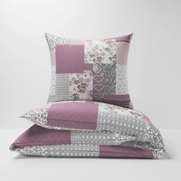 Pościel bawełniana 200x220 + poszewki na poduszkę 2*70x80 | 137Npu | szaro różowa | patchwork serca