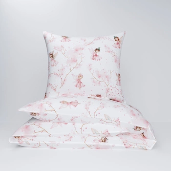 Pościel dla dziecka bawełniana 90x120 + poszewka na poduszkę 40x60 | 154Nro | biało różowa | wrózki elfy