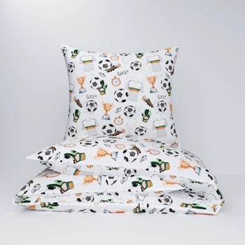 Pościel dla dziecka bawełniana 120x180 + poszewka na poduszkę 50x60 | 089gol | biała | piłki puchary
