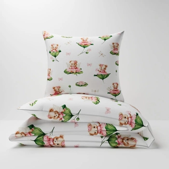 Pościel dla dziecka bawełniana 100x160 + poszewka na poduszkę 50x60 | 154miś | biała | Calineczka
