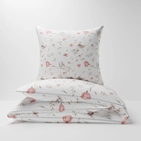 Pościel dla dziecka bawełniana 120x180 + poszewka na poduszkę 70x80 | 428mys | biała | myszki w kwiatach