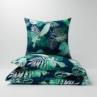 Pościel bawełniana 200x220 + poszewki na poduszkę 2*70x80 | 455but | butelkowa | liście monstery