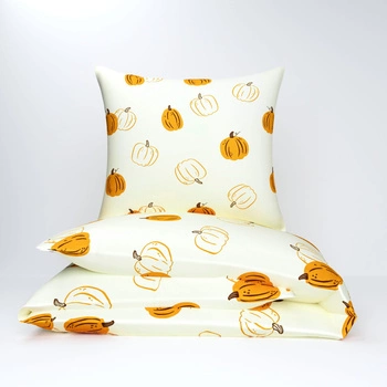 Pościel dla dziecka bawełniana 90x120 + poszewka na poduszkę 40x60 | 300dyn | ecru | dynie halloween