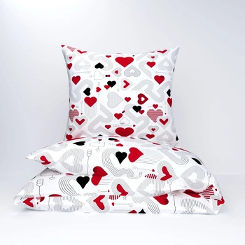 Pościel bawełniana 200x220 + poszewki na poduszkę 2*70x80 | 330bcz | biało czerwona | Walentynki serca