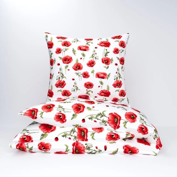 Pościel bawełniana 200x220 + poszewki na poduszkę 2*70x80 | 126bia | biało czerwona | kwiaty maki