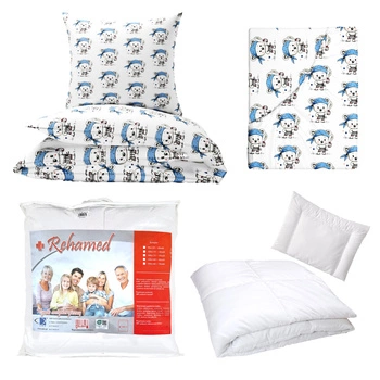 Zestaw pościeli 100x160 + 40x60 + prześcieradło we wzorze 80x160 | 189blu | niebieka | psy