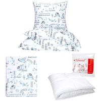 Zestaw pościeli 100x160 + 40x60 + prześcieradło we wzorze 80x160 | 314nie | niebieska | słonie
