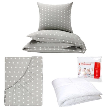 Zestaw pościeli 100x160 + 40x60 + prześcieradło we wzorze 80x160 | 401sza | szara | gwiazdy