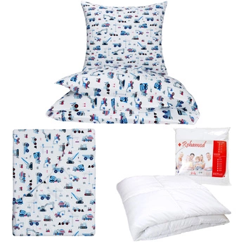 Zestaw pościeli 100x160 + 40x60 + prześcieradło we wzorze 80x160 | 404blu | niebieska | koparki