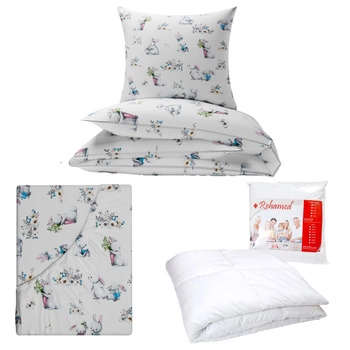 Zestaw pościeli 100x160 + 40x60 + prześcieradło we wzorze 80x160 | 502bia | biała | króliczki