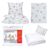 Zestaw pościeli 100x160 + 40x60 + prześcieradło we wzorze 80x160 | 246pol | biała | myszki zwierzątka
