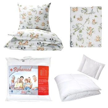 Zestaw pościeli 100x160 + 50x60 + prześcieradło we wzorze 80x160 | 050bra | biała | sarenki i misie