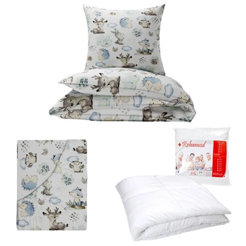 Zestaw pościeli 100x160 + 50x60 + prześcieradło we wzorze 80x160 | 081min | kolorowa | farma