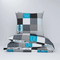 Pościel bawełniana 140x200 + poszewki na poduszkę 2*70x80 | 190turk | czarno turkusowa | Patchwork z gwiazdą