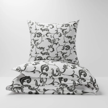Pościel bawełniana 140x200 + poszewki na poduszkę 2*70x80 | 193b-s | biało szara | gałązki