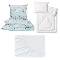 Zestaw pościeli 100x160 + 40x60 + prześcieradło jersey 80x160 | 202jas | niebieska | kosmos