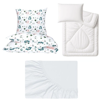Zestaw pościeli 100x160 + 50x60 + prześcieradło jersey 80x160 | 186Kbr | biała | konie