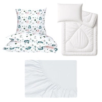 Zestaw pościeli 100x160 + 50x60 + prześcieradło jersey 80x160 | 198map | biała | kontynenty zwierzęta
