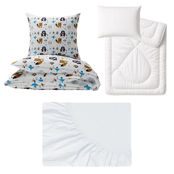 Zestaw pościeli 100x160 + 50x60 + prześcieradło jersey 80x160 | 189B3D | biała | pieski