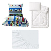 Zestaw pościeli 100x160 + 50x60 + prześcieradło jersey 80x160 | 088nie | niebieska | autka
