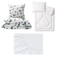Zestaw pościeli 100x160 + 50x60 + prześcieradło jersey 80x160 | 104tip | biała | zwierzątka na campingu