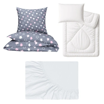 Zestaw pościeli 100x160 + 50x60 + prześcieradło jersey 80x160 | 314bra | ecri | sarenki
