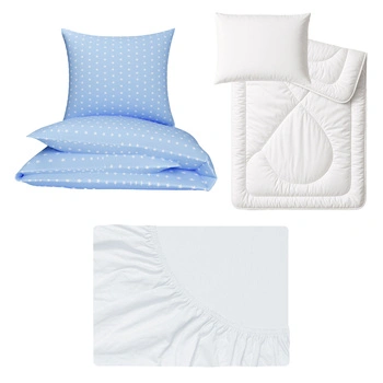 Zestaw pościeli 100x160 + 50x60 + prześcieradło jersey 80x160 | 401nieb | niebieska | gwiazdy