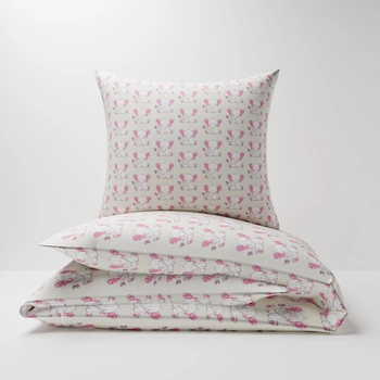 Pościel bawełniana 140x200 + poszewki na poduszkę 2*70x80 | 314róż | różowa | słonie