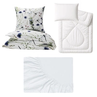 Zestaw pościeli 100x160 + 40x60 + prześcieradło jersey 80x160 | 129blu | biała | polne kwiaty
