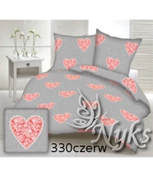 Pościel bawełniana 140x200 + poszewka na poduszkę 50x60 | 330cze | szaro czerwona | serca walentynki