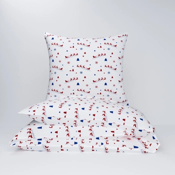 Pościel bawełniana 140x200 + poszewki na poduszkę 2*70x80 | 327bcg | biała | świąteczna Mikołaje