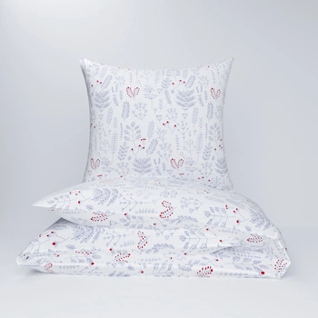 Pościel flanela 140x200 + poszewka na poduszkę 70x80 | 129red | biało czerwona | polne kwiaty