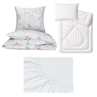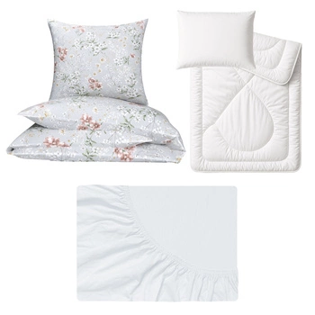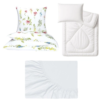 Zestaw pościeli 100x160 + 40x60 + prześcieradło jersey 80x160 | 205kol | biała | kwiaty