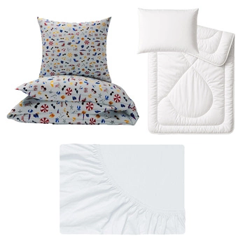 Zestaw pościeli 100x160 + 40x60 + prześcieradło jersey 80x160 | 004pol | biała | motyle kwiaty