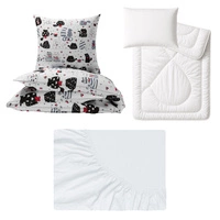 Zestaw pościeli 100x160 + 40x60 + prześcieradło jersey 80x160 | 061b-c | biało czerwona | koty