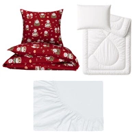 Zestaw pościeli 100x160 + 50x60 + prześcieradło jersey 80x160 | 002bor | bordowa | świąteczna Mikołaje