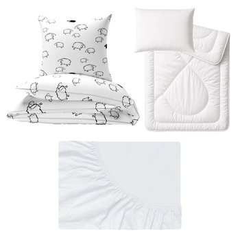 Zestaw pościeli 100x160 + 50x60 + prześcieradło jersey 80x160 | 055bia | biało czarna | baranki