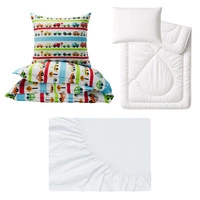 Zestaw pościeli 100x160 + 50x60 + prześcieradło jersey 80x160 | 104tip | biała | zwierzątka na campingu