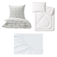Zestaw pościeli 100x160 + 50x60 + prześcieradło jersey 80x160 | 121pas | biała | kwiaty bluszcz