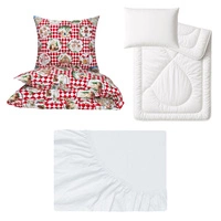 Zestaw pościeli 100x160 + 50x60 + prześcieradło jersey 80x160 | 130rom | biało czerwona | świąteczna Mikołaje
