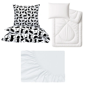 Zestaw pościeli 100x160 + 50x60 + prześcieradło jersey 80x160 | 288bia | biało czarna | koty