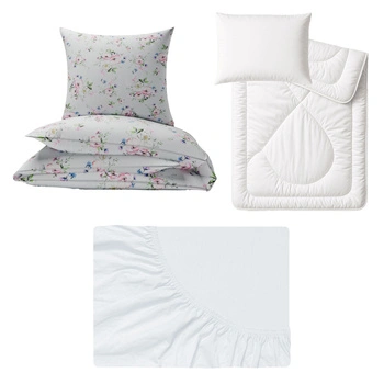 Zestaw pościeli 100x160 + 50x60 + prześcieradło jersey 80x160 | 336los | biała | kwiaty piwonie