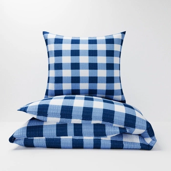 Pościel z kory 140x200 + poszewka na poduszkę 70x80 | krata granat | granatowa | kratka